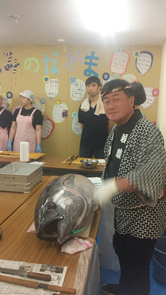 仙台市太白区茂庭に大将が、第26回被災地支援の鮪解体ショーを行いにいって参りました。